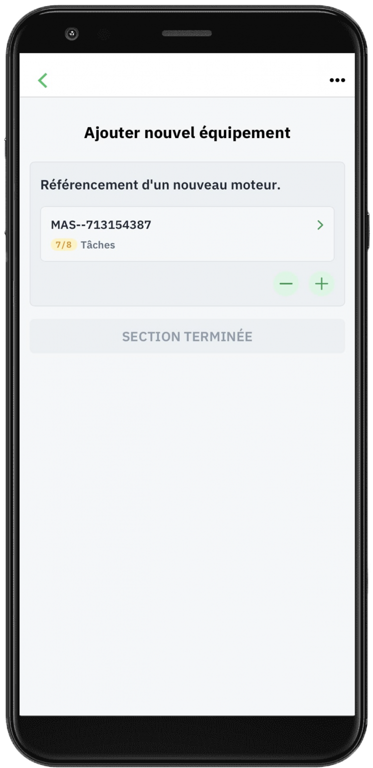 Depuis l’application mobile, l’opérateur réalise le suivi du moteur qu’il a référencé auparavant.