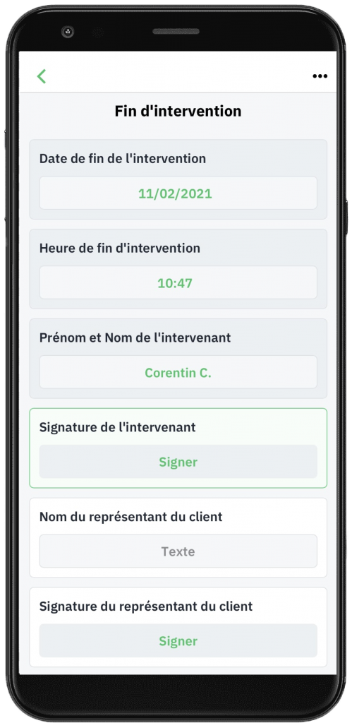 Une fois le formulaire complété, l’opérateur peut signer et valider son intervention.